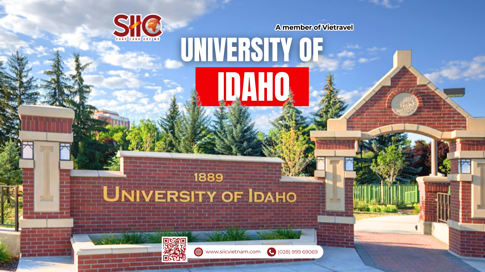 University of Idaho (U of I) – hay còn gọi là Đại học Idaho – là trường đại học công lập lâu đời và danh giá nhất tại bang Idaho, Hoa Kỳ.Được thành lập từ năm 1889, U of I không chỉ là một biểu tượng giáo dục của vùng Tây Bắc mà còn là điểm đến lý tưởng cho sinh viên quốc tế nhờ chất lượng đào tạo vượt trội (Tier 1) và chính sách hỗ trợ tài chính hấp dẫn.